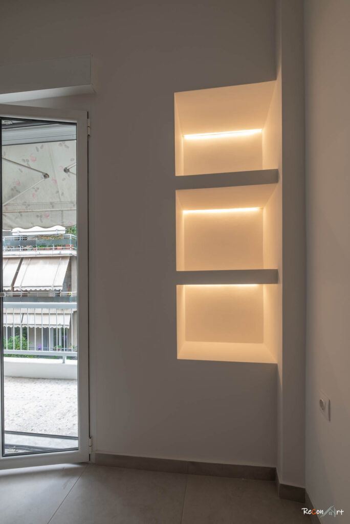 - Κατασκευή ρααφιων στο σαλόνι και στο χολ με γυψοσανίδα